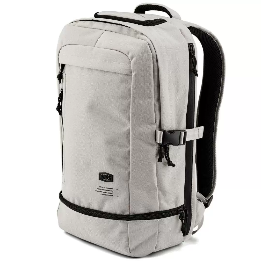 100% Transit Warm Grey Backpack. Transit Backpack by 100%®. Built to handle the task at hand, whether it’s headed to school or to the track, 100% backpacks provide a simple solution to keeping your things organized. Streamlines your commute with dedicated storage throughout. Large main compartment is complemented by a separate padded laptop pocket with easy side access. Sunglasses stay safe in a fleece-lined pocket, your water bottle fits in a mesh pocket and everything else can be stashed in the roomy front zip compartment.