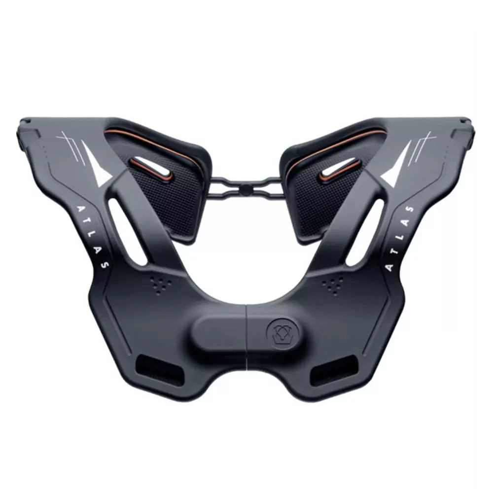 The Atlas Vision anti-compression collar is the front only chest protector of the neck protection world. A device designed for one specific purpose, void of anything that doesnt contribute to that single job. The complete reimagine of the neck protection category leap frogs the competition with a simplified form, addition of advanced and proven materials, and the biggest improvement in user experience since the birth of neck protection. By only being built up over the shoulders, the Atlas Vision aims to reduce compression forces only. By removing the traditional front and rear shelves of a neck brace, range of motion is increased by 66%, weight is reduced by 45% (vs Atlas Air), and the fit of the product creates a substantially wider audience for the product – enabling us to provide an option for anyone who couldn’t previously wear a traditional neck brace.