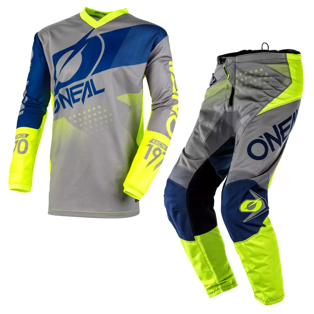 ONeal Element Factor Kids MX Kit Combo Grey Blue Neon Yellow