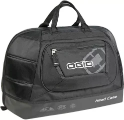 Head Case Stealth Helmet Bag by Oigio. The OGIO Head Case Helmet Bag is a superior means to store and carry the one item that protects your head, your helmet. The bag is oversized, so all types and sizes of helmets fit into it. There is an external pocket for goggles, lenses, or anything you need to access easily.