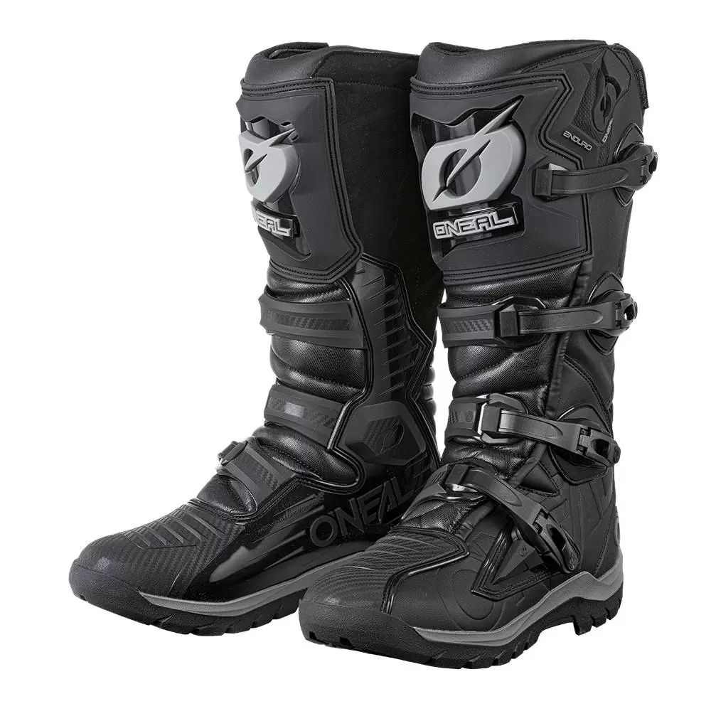 RMX Enduro Boots in Black by ONeal. Where Engineering, design, and comfort come together in perfect form! This top-grade product is expertly made in compliance with stringent industry standards to offer a fusion of a well-balanced design and high level of craftsmanship.