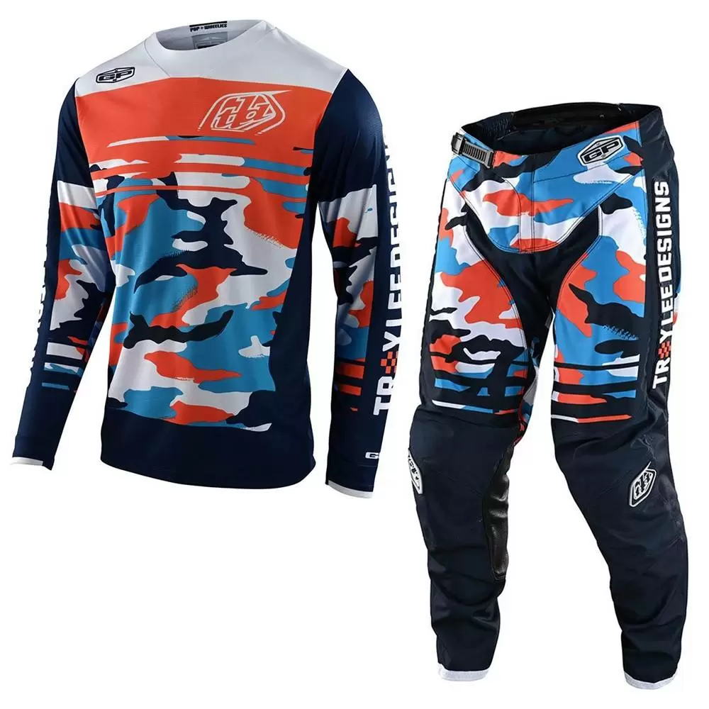 Troy Lee Designs GP Formula Camo Navy Orange Motocross Kit Combo
