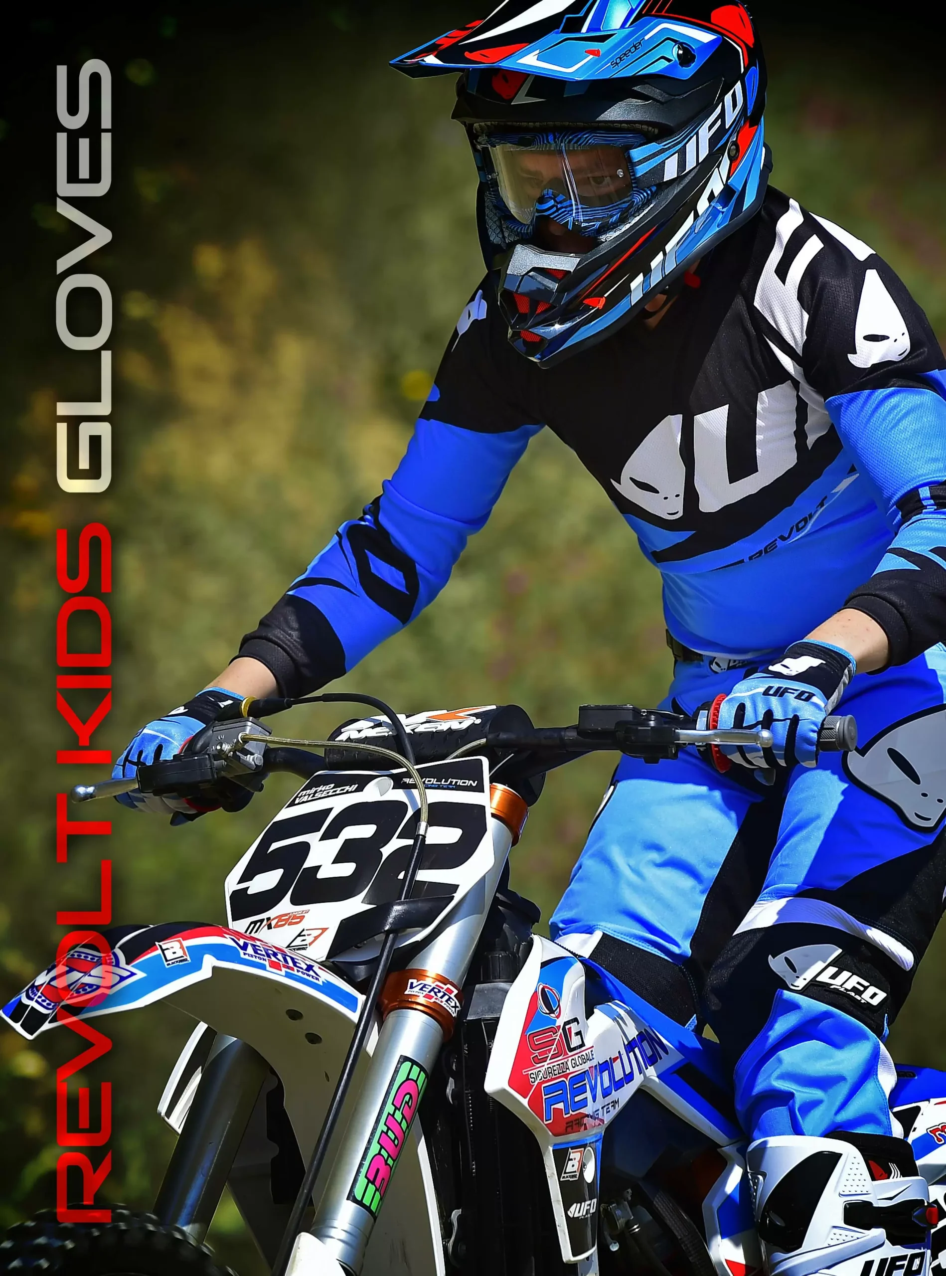 Revolt Kids motocross gloves are developed to guarantee the best comfort and total freedom of movement.