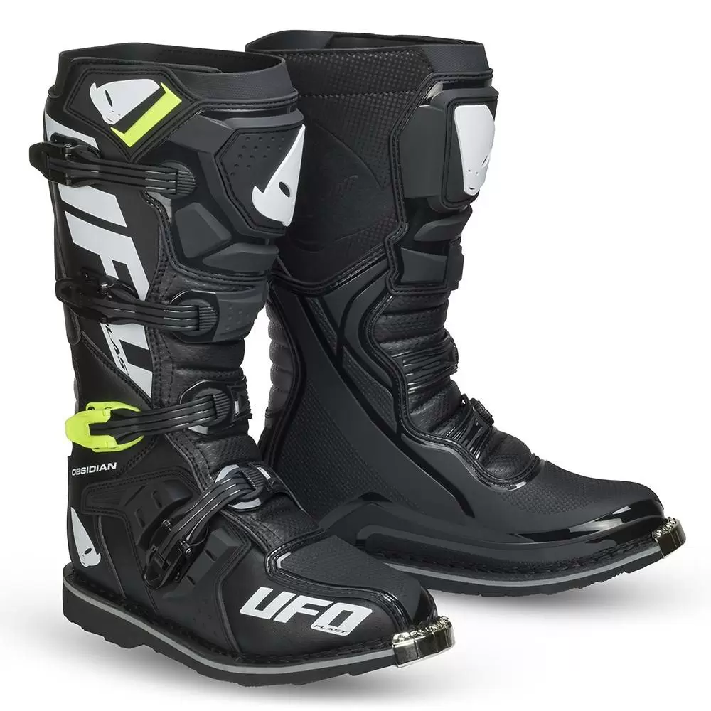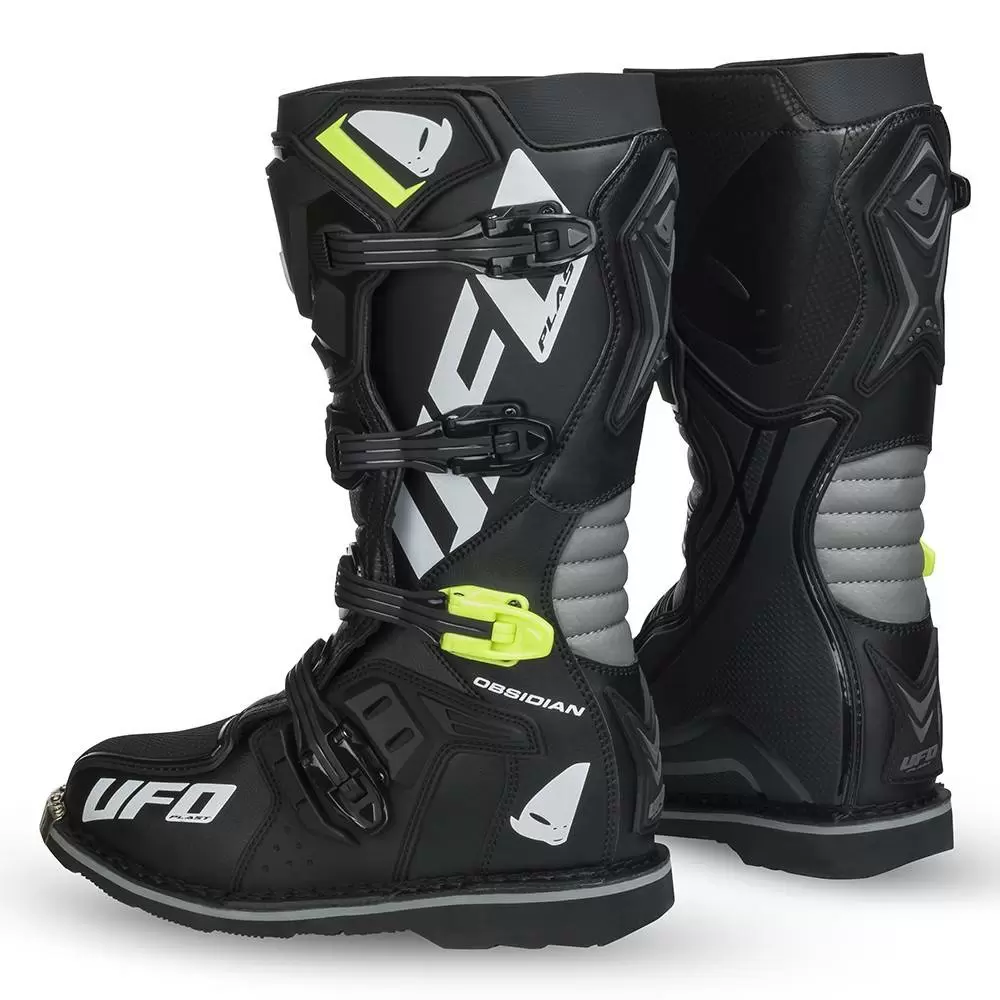 Obsidian Off Road Boots by UFO Plast®. The Obsidian is designed for Motocross use. UFO delivers another high quality and durable off-road boot made to fit mx riders of all levels. The Obsidian Boots are constructed with high quality materials chosen for their weight, strength and value.