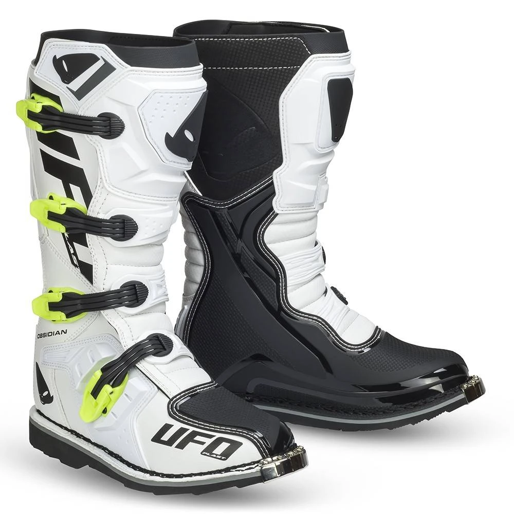 Obsidian Off Road Boots by UFO Plast®. The Obsidian is designed for Motocross use. UFO delivers another high quality and durable off-road boot made to fit mx riders of all levels. The Obsidian Boots are constructed with high quality materials chosen for their weight, strength and value.